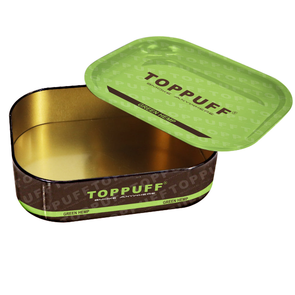 TOPPUFF Smell Proof Metal Tin with Green Metal Rolling Tray, 180 x 140 x 44 mm Storage Case, Portable Tinplate Storage Box