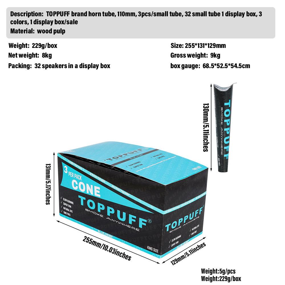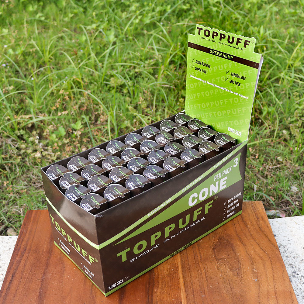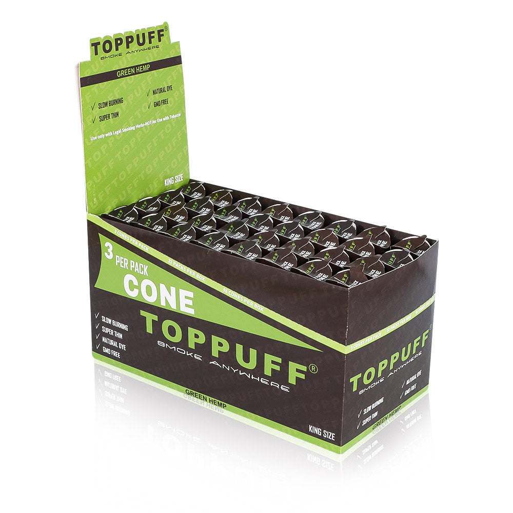 TOPPUFF Green King Size Pre Rolled Cones, Natural Rolling Cones With Tips, Slow Burning Pre Rolled Rolling Paper, 3 PCS / Pack 32 Packs / Box
