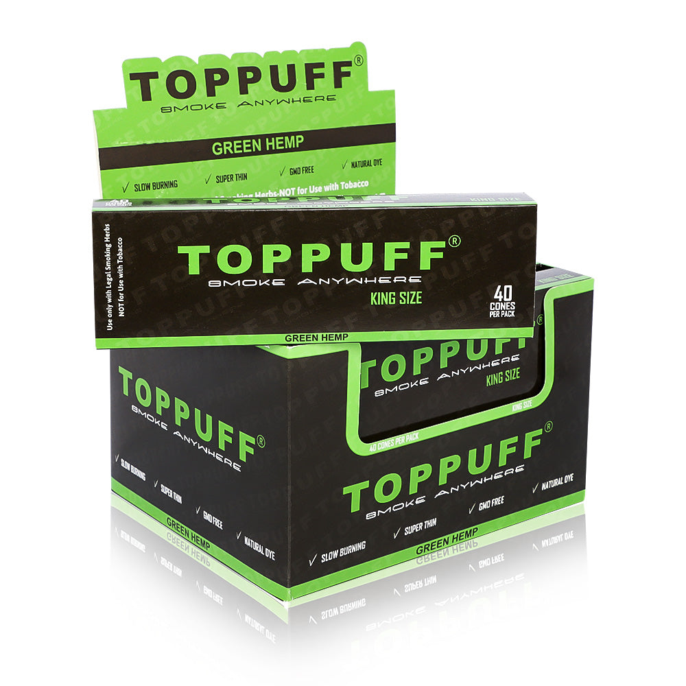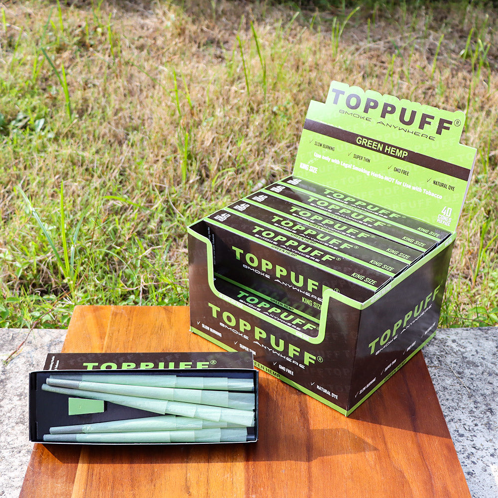 TOPPUFF Green King Size Pre Rolled Cones, Natural Rolling Cones With Tips, Slow Burning Pre Rolled Rolling Paper, 40 PCS / Pack 12 Packs / Box