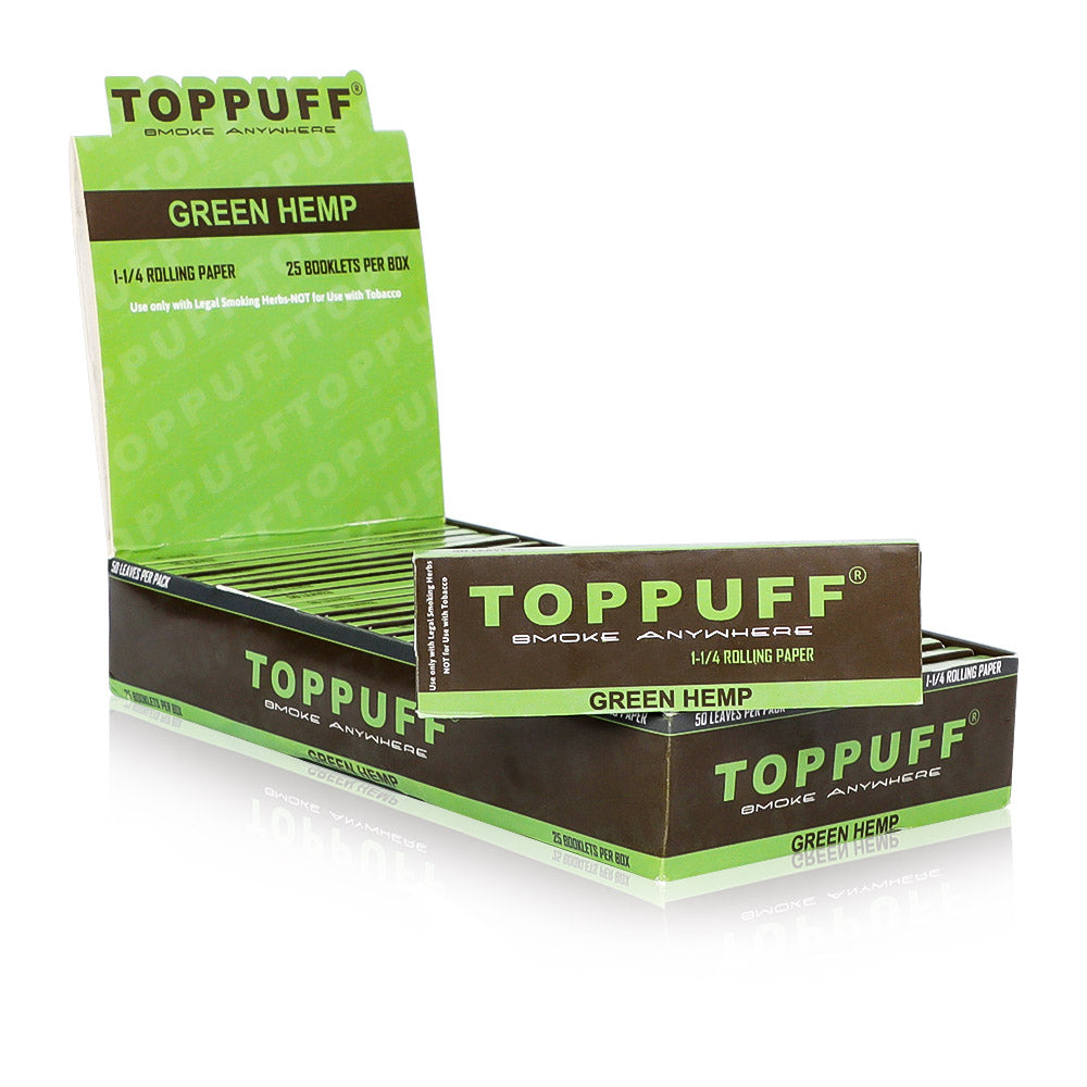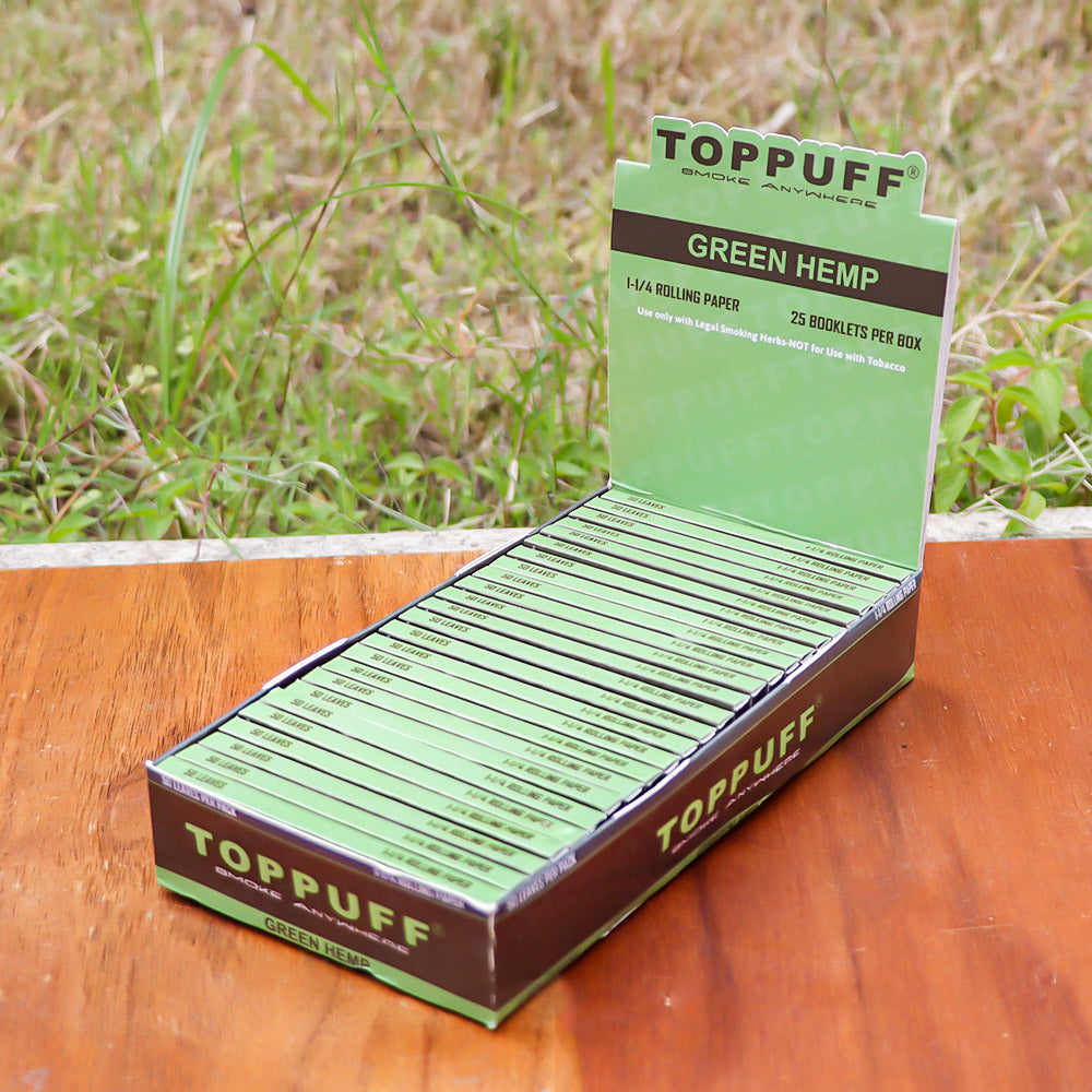 TOPPUFF Green Rolling Paper, 1 1/4 Size Slim Cigarette Rolling Paper, Slow Burning Rolling Papers, 50 PCS / Pack 25 Packs / Box