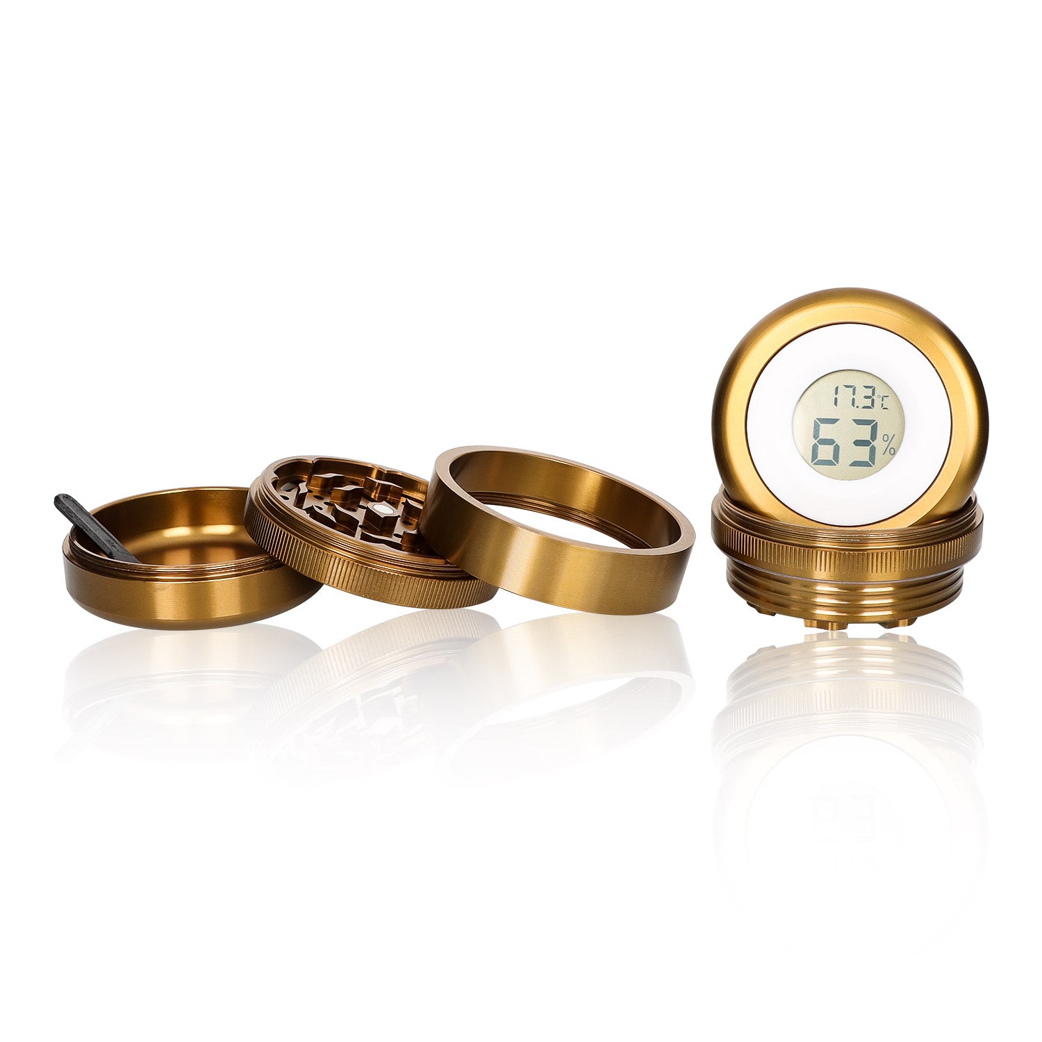 Our 4-part design includes a screen and kief catcher, which are both important features missing on many of the cheaper 2-part grinders. Our custom grinder has a smooth and effortless grinding action and the screen keeps stuff from falling into your pocket.