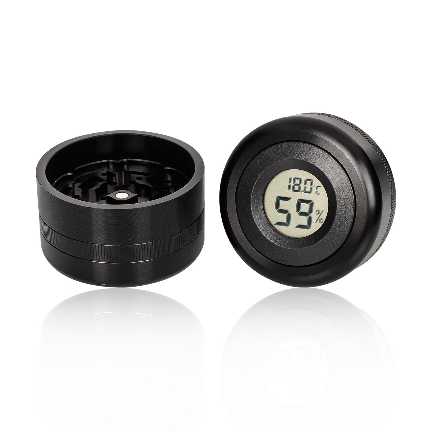 The best part of these custom metal herb grinders is the strong magnet on top for easy one-handed operation and the deep concave grinding surface which holds more material than most other grinders.