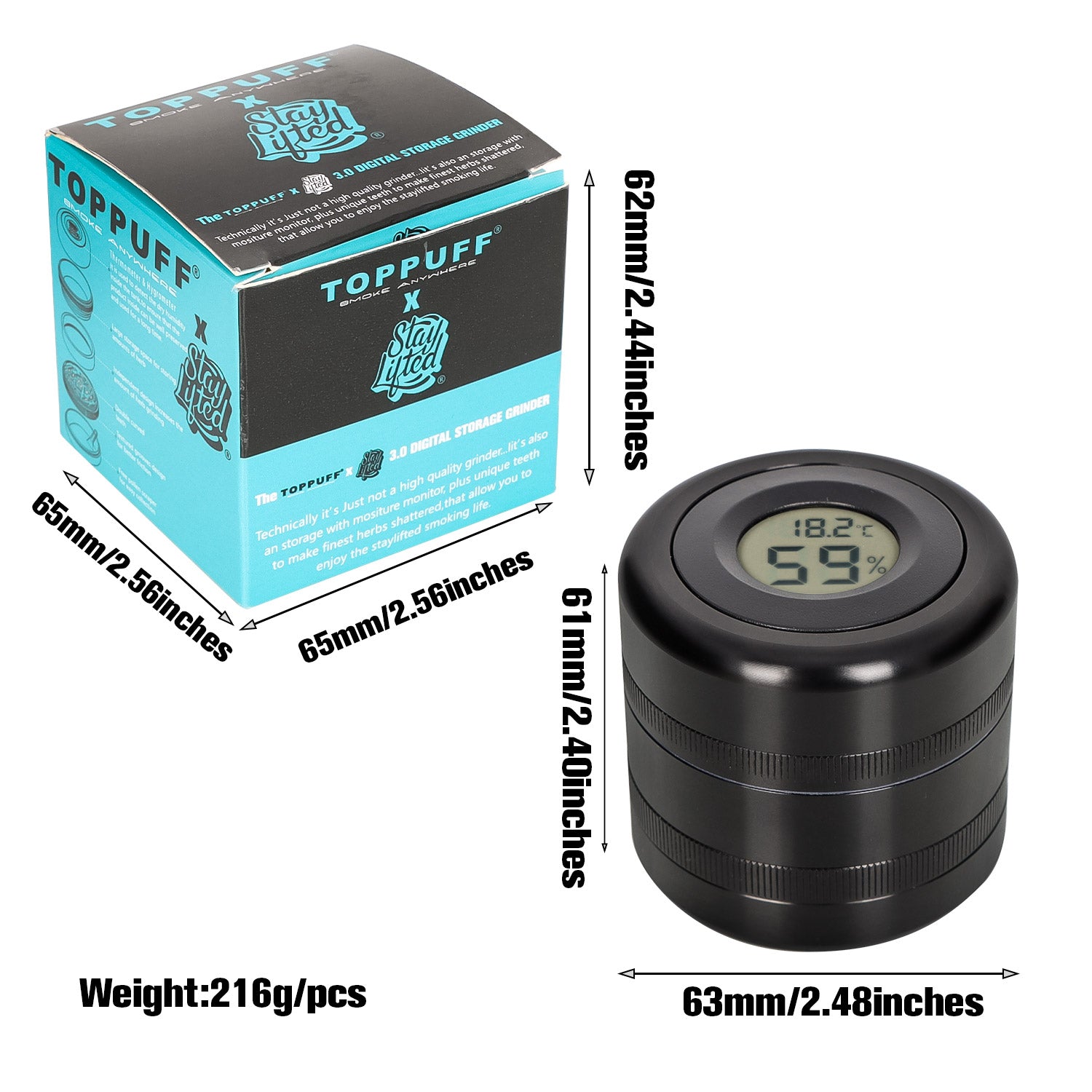 TOPPUFF Digital Display Aluminum Alloy Herb Grinder, 4 Lay Ø 63 Smoker Grinder, Premium Portable Tobacco Grinder