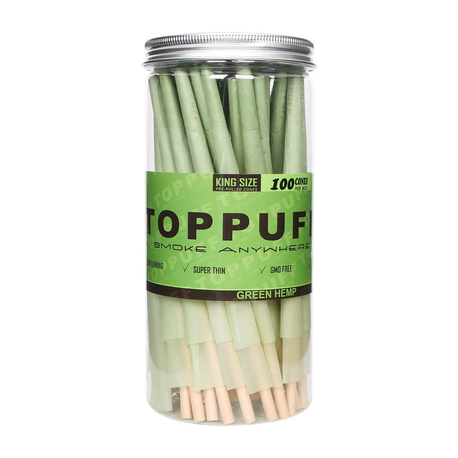TOPPUFF Green King Size Pre Rolled Cones, Natural Rolling Cones With Tips, Slow Burning Pre Rolled Rolling Paper, 100 PCS / Pack