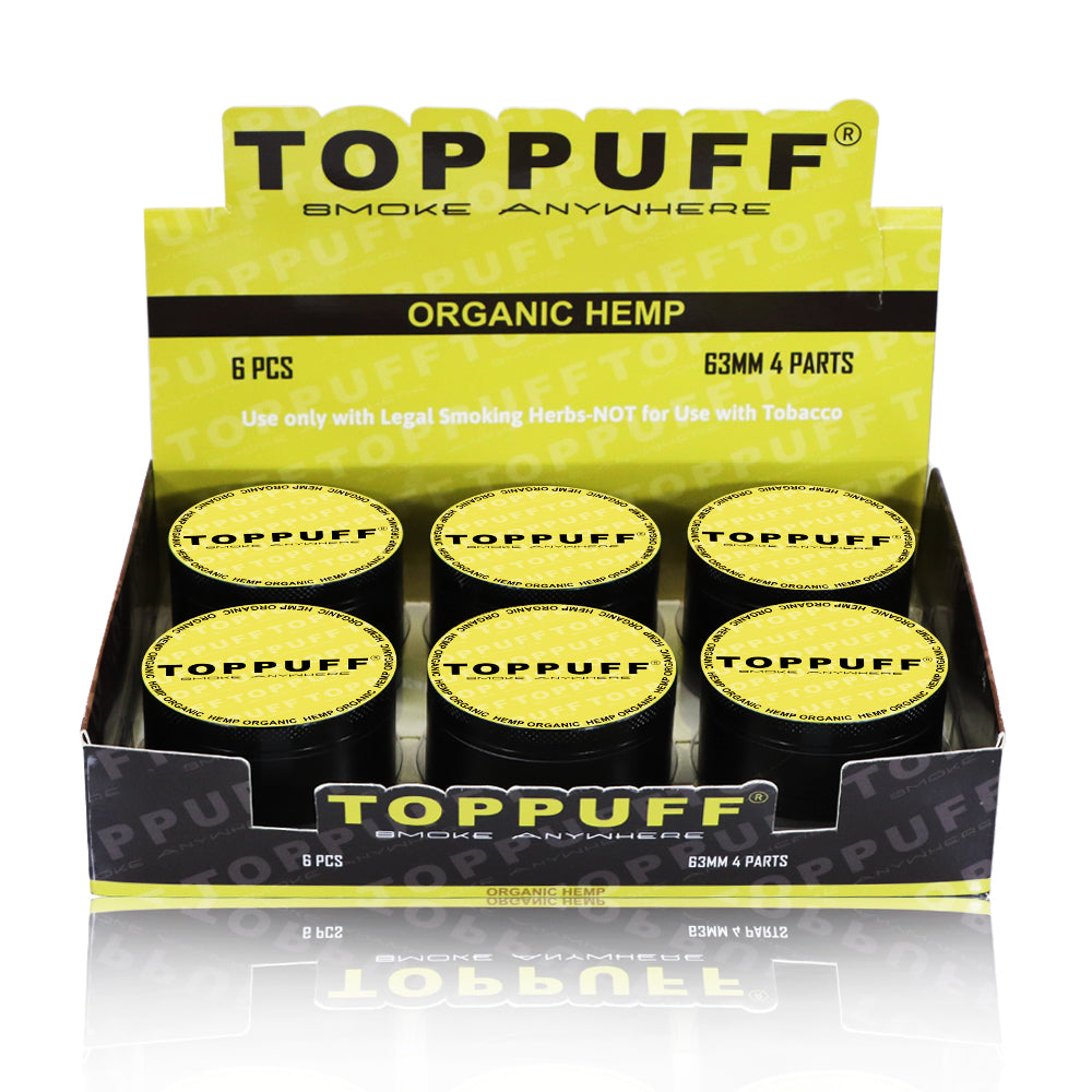 TOPPUFF Zinc Alloy Herb Grinder with Yellow Lid Cover, 4 Lay Ø 63 Smoker Grinder, Premium Portable Tobacco Grinder, 6 PCS/ Box